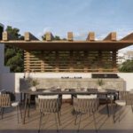 A private rooftop solarium with jacuzzi and fully equipped barbecue area offers breathtaking panoramic views of the Mediterranean—your own sanctuary above the coast. Additional features include a wine cellar, underfloor heating, a bioethanol fireplace, and smart home automation controlling climate, lighting, blinds, and security. The homes also benefit from photovoltaic panels, an aerothermal climate system, and pre-installation for electric vehicle charging, ensuring energy efficiency without compromising luxury.