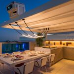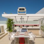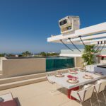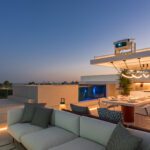 The rooftop terrace is an entertainer's dream, complete with an outdoor kitchen, a private pool, and a top-tier projector that transforms the area into an open-air cinema at night. From natural oak doors to a sophisticated domotic system, every detail in this villa exudes quality and luxury.
