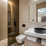 Each of the four bathrooms features high-end fixtures and exquisite marble details, blending style and functionality seamlessly.
