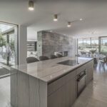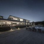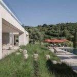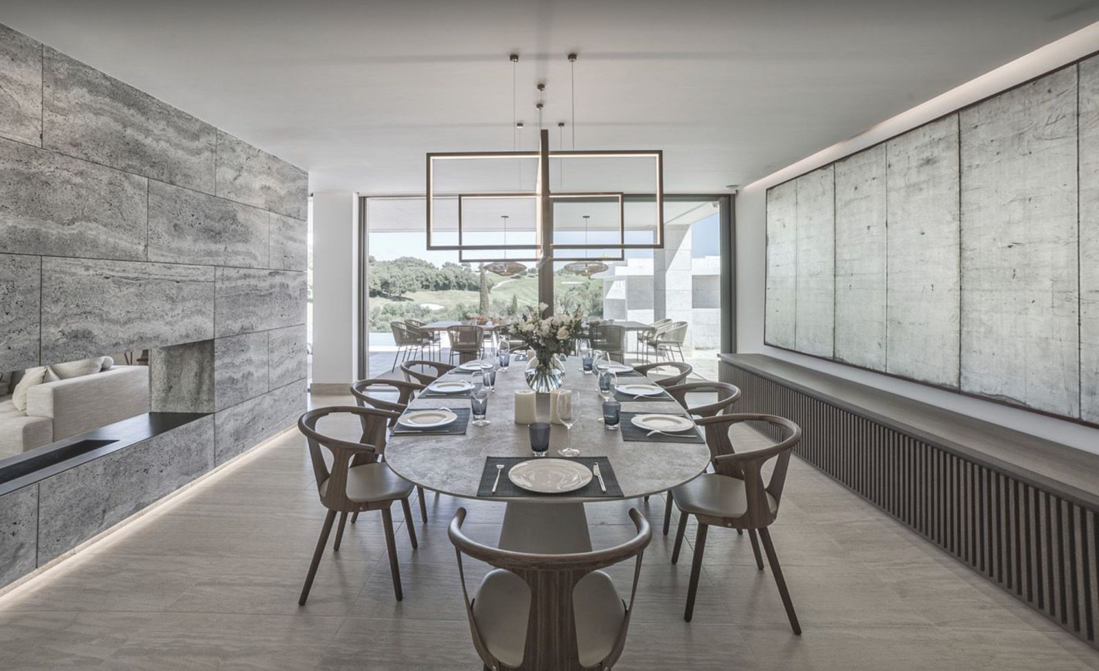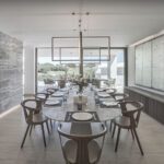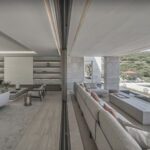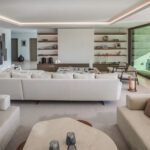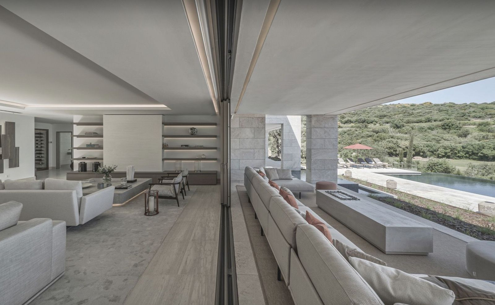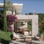 The villa’s bold, modern lines are softened by the native Andalusian landscaping, where olive trees, cork oaks, lavender, rosemary, and cypress trees frame the home with natural beauty. This dynamic interaction between architecture and nature allows the exterior spaces to evolve with the seasons, creating a living landscape that breathes with its environment.