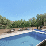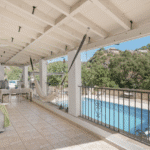 Ein großer überdachter Eingang empfängt Sie in einen privaten Parkplatz. Von der Autobahn aus öffnet die Haustür ein gemütliches Wohnzimmer mit Kamin und direktem Zugang zur Poolterrasse und schafft eine warme und einladende Atmosphäre. Die voll ausgestattete Küche verbindet sich nahtlos mit einer geräumigen überdachten Terrasse mit Blick auf den Pool und die umliegende Landschaft – ein idealer Ort für Restaurants und Entspannung im Freien.