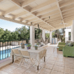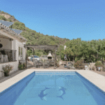 Der Außenbereich bietet sowohl überdachte als auch offene Terrassen sowie eine charmante Pergola mit einem Grill neben dem Pool. Es gibt auch einen separaten Abstellraum oder eine Werkstatt, und die Immobilie profitiert von einer eigenen Solaranlage.