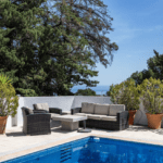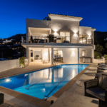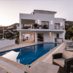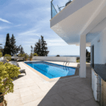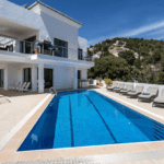 From the upper level, breathtaking panoramic views stretch across the Mediterranean Sea and the surrounding mountains — a spectacular backdrop for your morning coffee or evening glass of wine. Multiple terraces and outdoor lounge areas frame the private pool, offering sun from dawn to dusk.