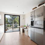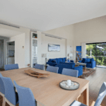 Inside, the villa features three generously sized bedrooms, three beautifully appointed bathrooms, and a stylish guest toilet. Expansive glass panels and floor-to-ceiling windows flood the interior with natural light, creating a bright, open atmosphere that invites the outdoors in.